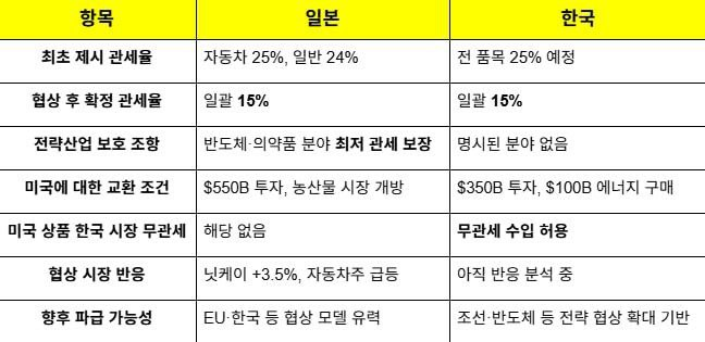 • 자동차 관세: 25% → 15%로 인하 (韓 정부 공식 발표)