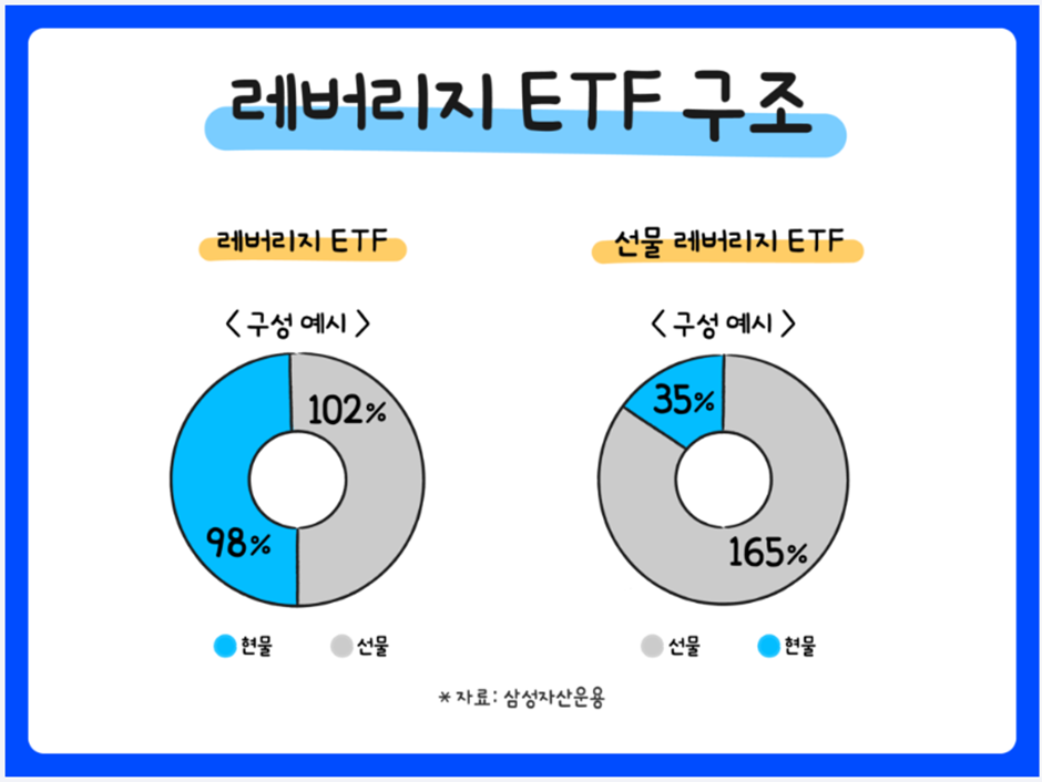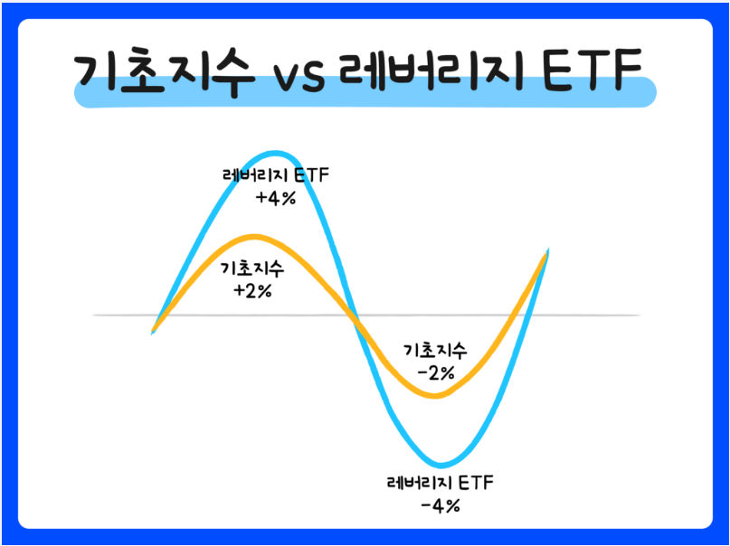 - 일반 ETF는 기초 지수 수익률을 거의 그대로 반영하는 반면, 레버리지 ETF는 파생상품과 차입을 사용해 수익률을 확대.