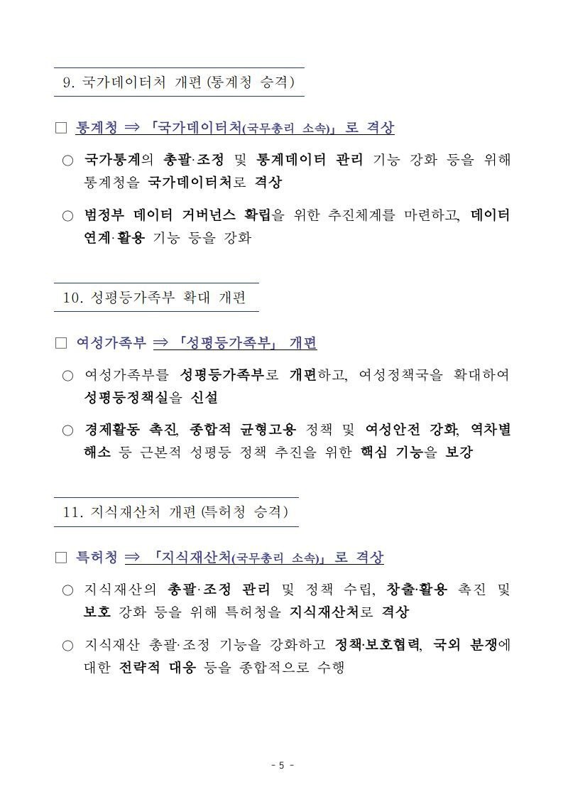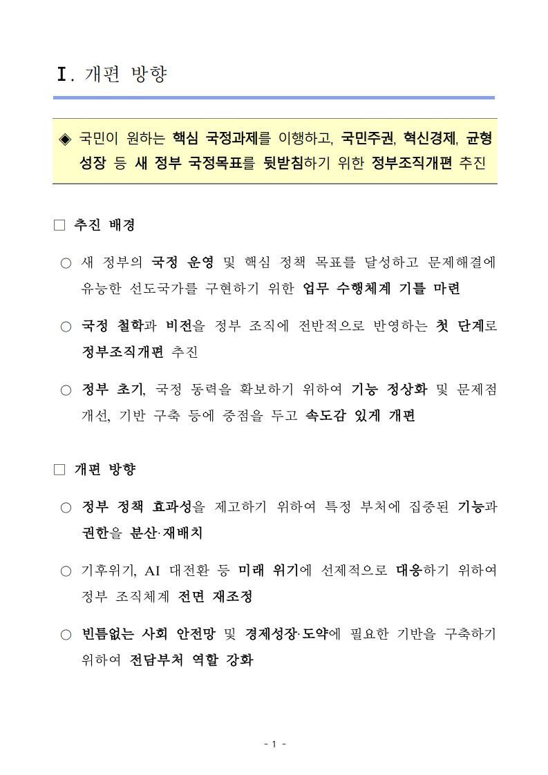 정부조직 개편방안 발표 / 막강해진 총리실 권한, 예산편성, 통계관리, 검찰청 폐지(개혁)까지 맡는다