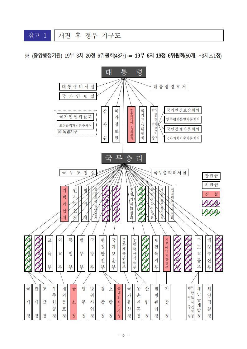 정부 조직 개편: 당정과 정부 조직 개편안을 확정하여 '19부 6처 19청' 체제로 전환