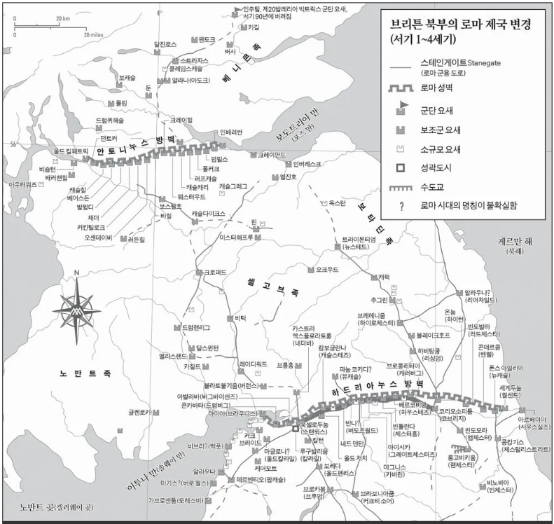 하드리아누스 방벽은 로마 황제 하드리아누스(재위 117~138년)의 명령으로 서기 122년경부터 잉글랜드와 스코틀랜드 경계 부근에 건설되기 시작해 약 6년 만에 완성된 길이 약 118km의 방벽입니다.
