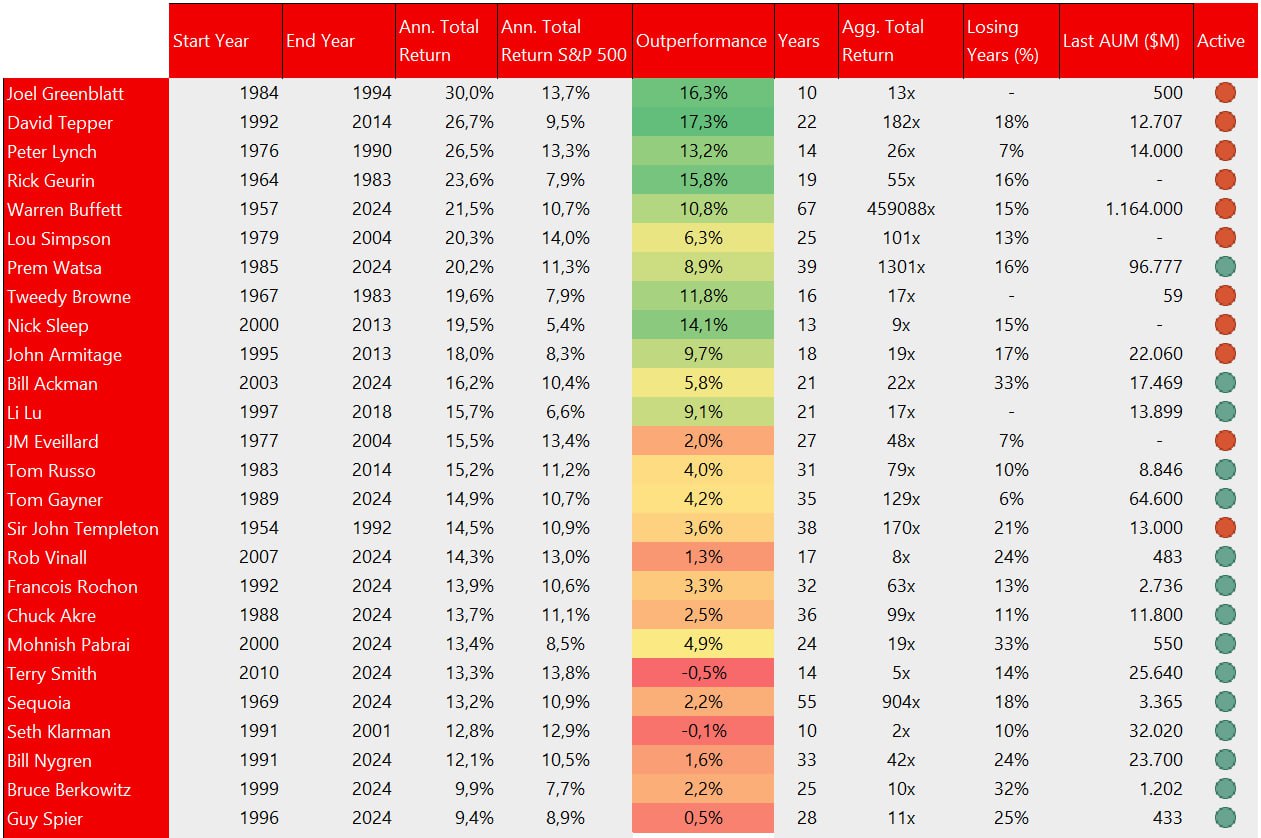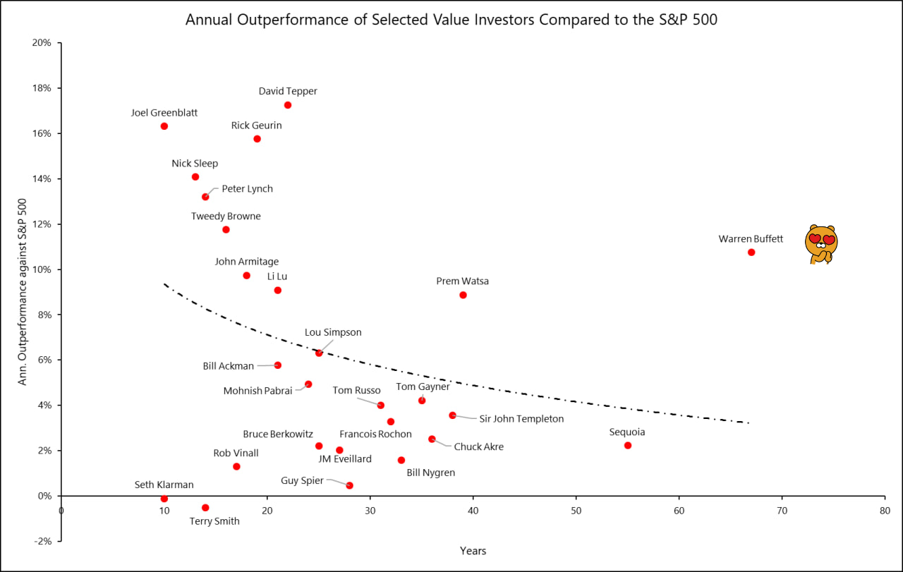 슈퍼투자자 성과 분석 결과 워런 버핏이 여전히 역대 최고의 투자자로 입증 되었습니다.