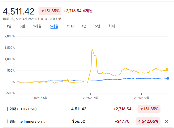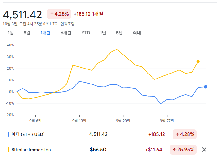 - 기존 비트코인 중심 트레저리 기업(예: MicroStrategy)과 달리 비트마인은 이더리움을 집중적으로 매집하며 “월가 금융의 블록체인 전환”에 적극적으로 대응하고 있습니다.