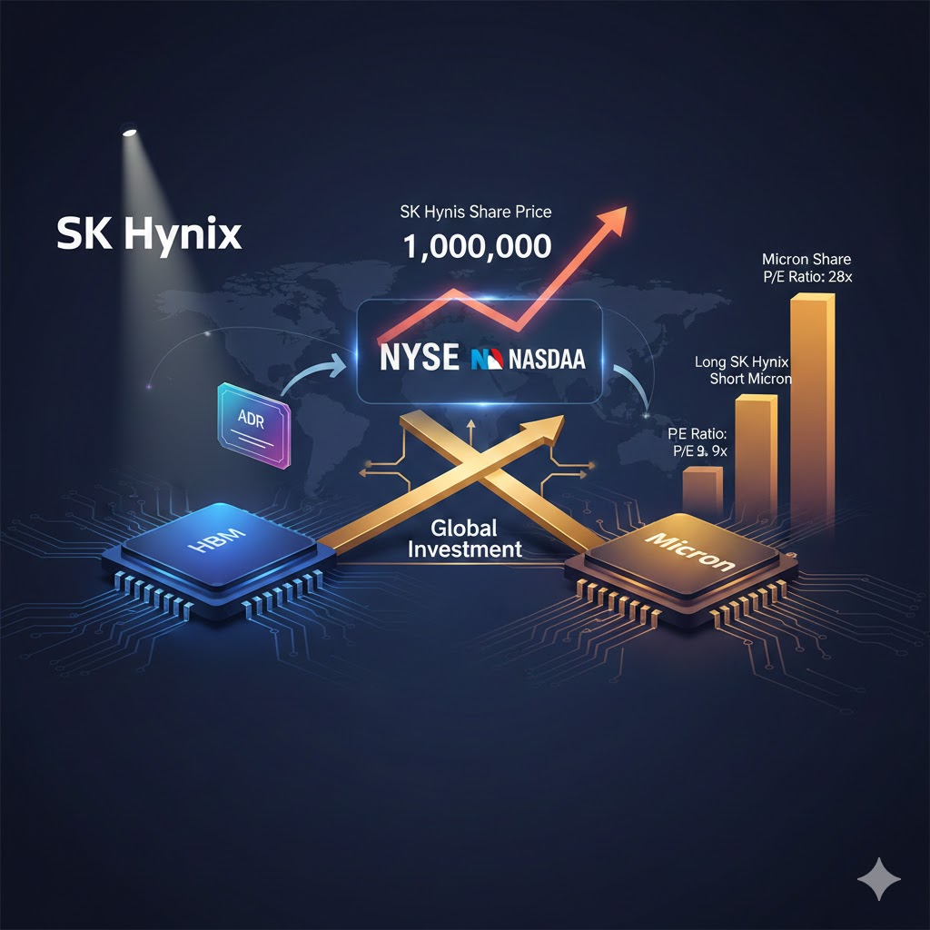 SK하이닉스: SK하이닉스는 현재 자사주(약 2.4%)를 활용하여 미국 뉴욕증권거래소(NYSE) 등에 ADR 형태로 상장하는 방안을 진지하게 검토 중입니다. 실적은 마이크론을 압도(HBM 시장 점유율 1위 등)함에도 불구하고, 한국 증시에만 갇혀 있어 발생하는 '코리아 디스카운트'를 해소하기 위함입니다. 미국 상장시 미국 내 펀드 및 패시브 자금(ETF 등) 유입이 쉬워지고, 무엇보다 필라델피아 반도체 지수(SOX) 편입 가능성이 열리며 글로벌 자금이 대거 유입될 수 있습니다.
