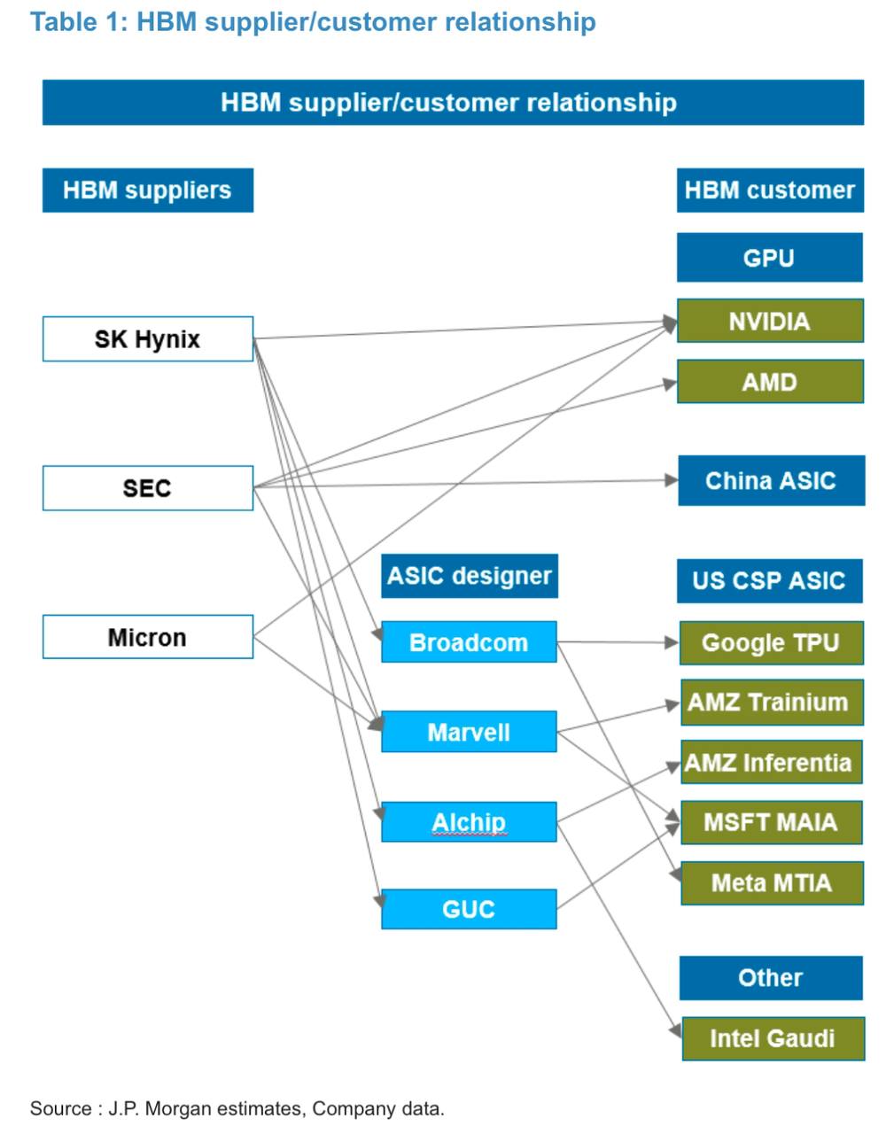 HBM 공급업체와 고객 간의 관계도를 보시면,