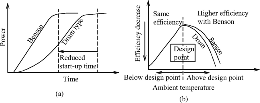 Benson Type은 빠른 기동, 높은 효율, 피로수명 측면에서 우수하지만, 수처리와 운전/제어의 복잡성이 높다.